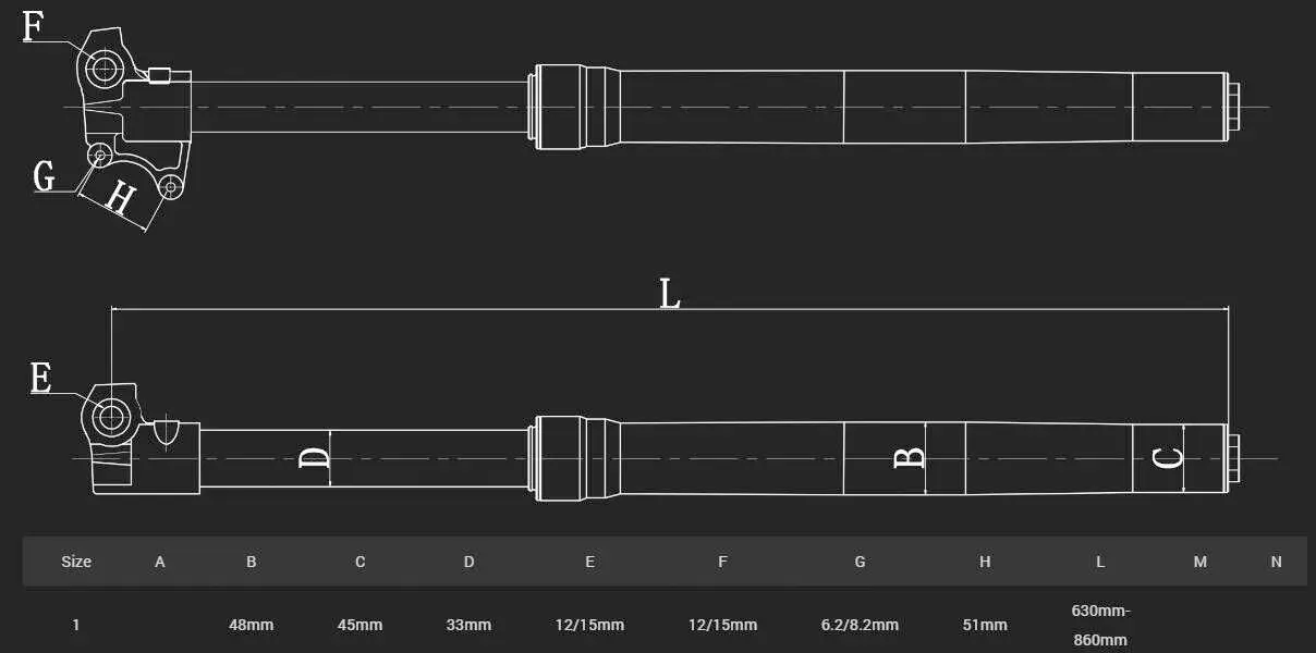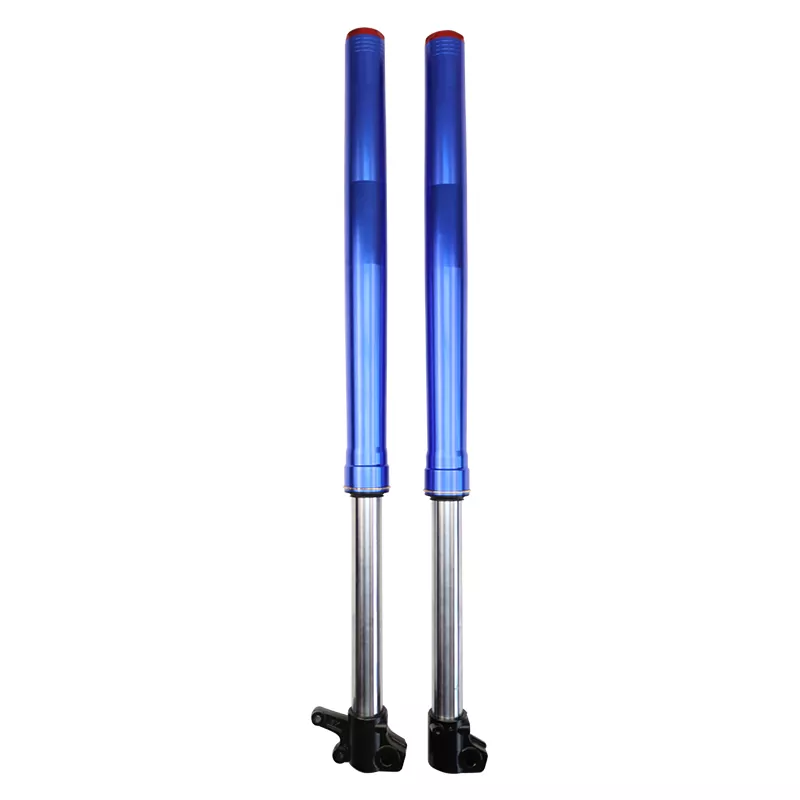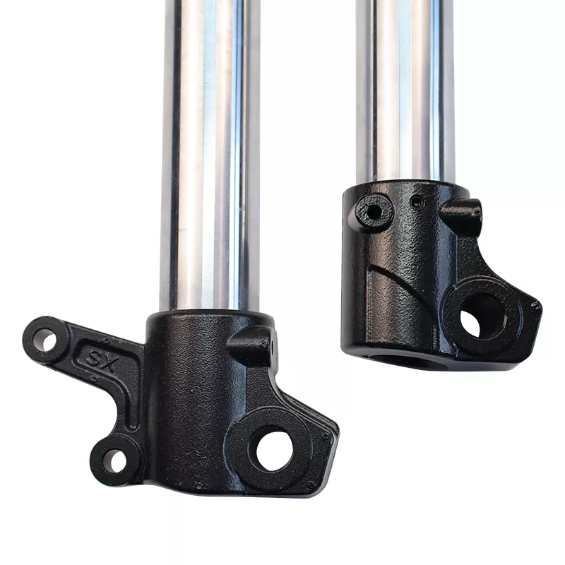 पिट बाइक सिंगल ॲडजस्टेबल इनव्हर्टेड फ्रंट फोर्कमध्ये अत्याधुनिक इन्व्हर्टेड डिझाईन आहे जे खडबडीत आणि स्थिरता वाढवते, खडबडीत भूभागावर उत्कृष्ट हाताळणी प्रदान करते. ही अभिनव रचना गुरुत्वाकर्षण केंद्र कमी करते, बाइकचे एकूण संतुलन सुधारते, विशेषत: हाय-स्पीड मॅन्युव्हर्स दरम्यान. याव्यतिरिक्त, ॲडजस्टेबल डॅम्पिंग सिस्टम रायडर्सना रीबाउंड सेटिंग्ज सानुकूलित करण्यास अनुमती देते, ज्यामुळे वेगवेगळ्या राइडिंग परिस्थितींमध्ये त्वरित अनुकूलन करणे शक्य होते. या फायद्यांसह, पिट बाईक सिंगल ॲडजस्टेबल इनव्हर्टेड फ्रंट फोर्क केवळ कामगिरीच वाढवत नाही तर पिट बाइक उत्साहींसाठी राइडिंगचा अनुभव देखील वाढवते.